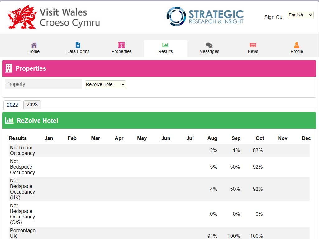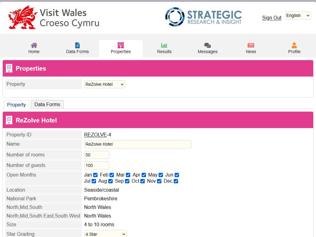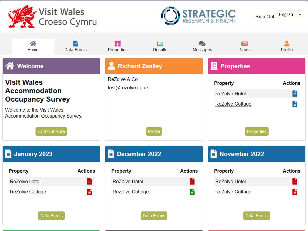 The system comprises a front-end website used by tourist accommodation providers for reporting their own occupancy and a back-end admin website use by the survey management teams to manage and report on occupancy statistics using this data.